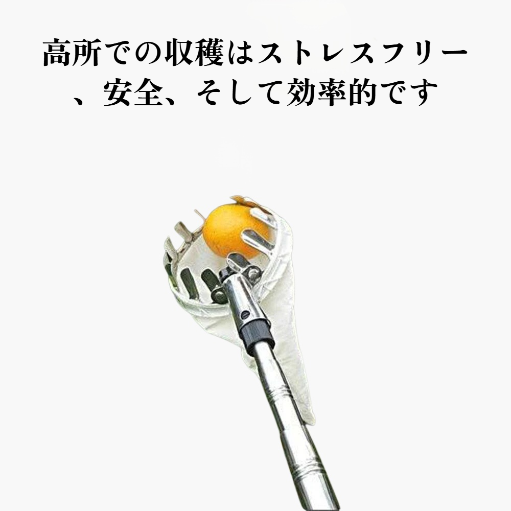 高所用果物収穫機は、伸縮自在なロッドと軽量設計により、高い場所の果物を簡単に収穫可能。耐久性素材使用で長持ち。