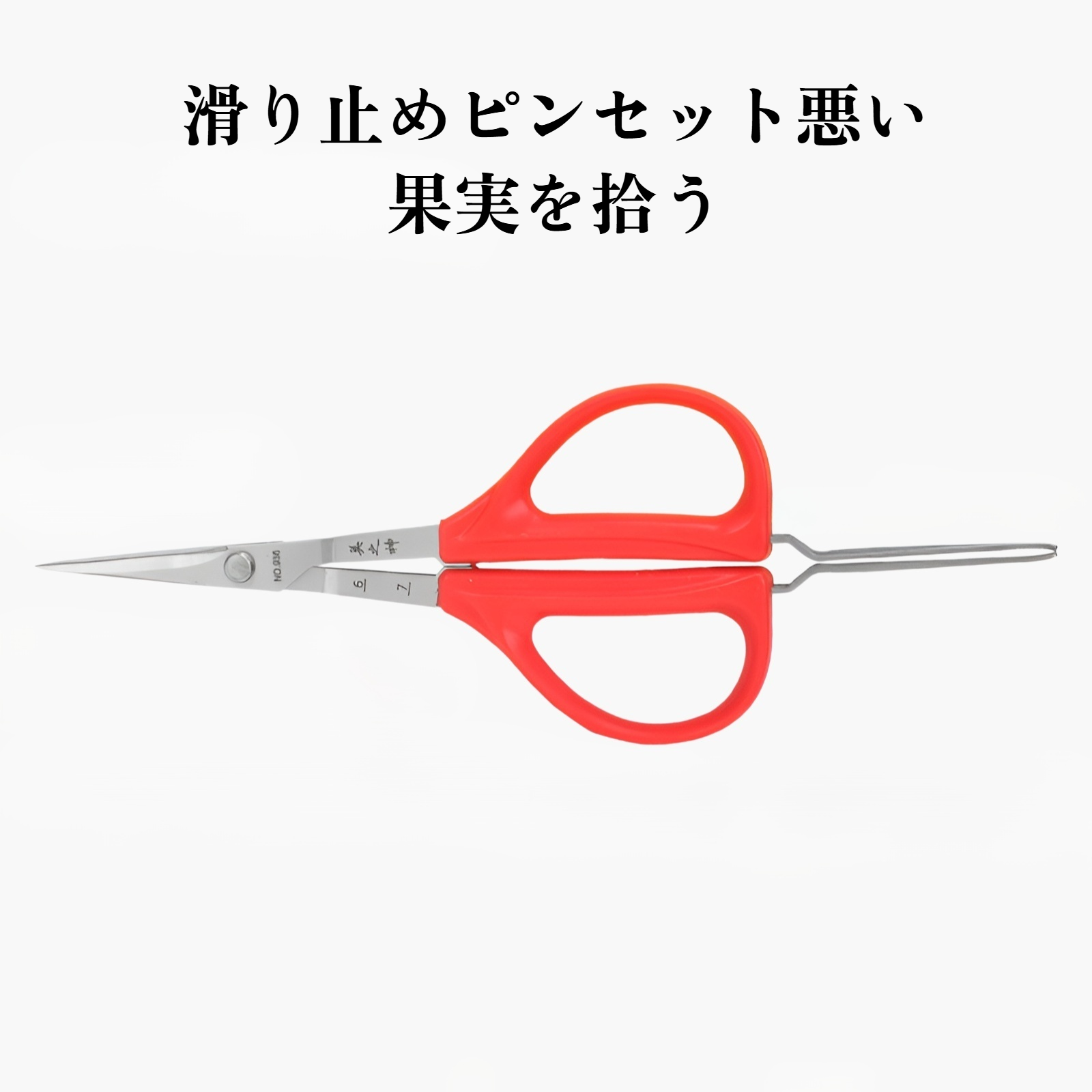 錆びにくいステンレス製果物摘み鋏。軽量で持ちやすく、鋭い刃先で果物の収穫作業がスムーズに行えます。